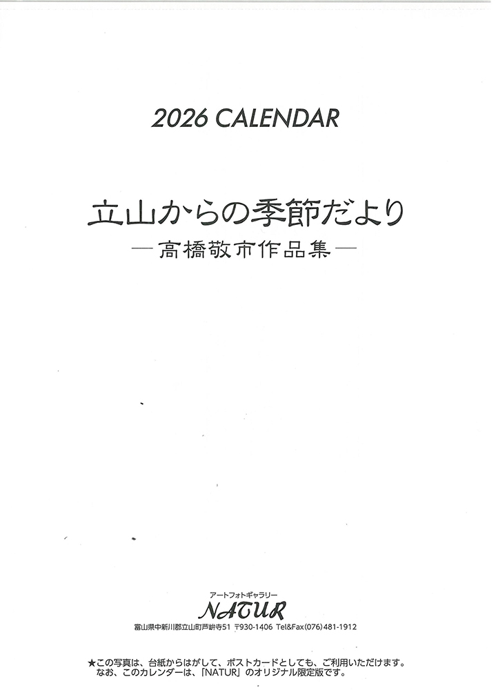 1988年から始まった、毎年恒例のカレンダー「立山からの季節だより」。
