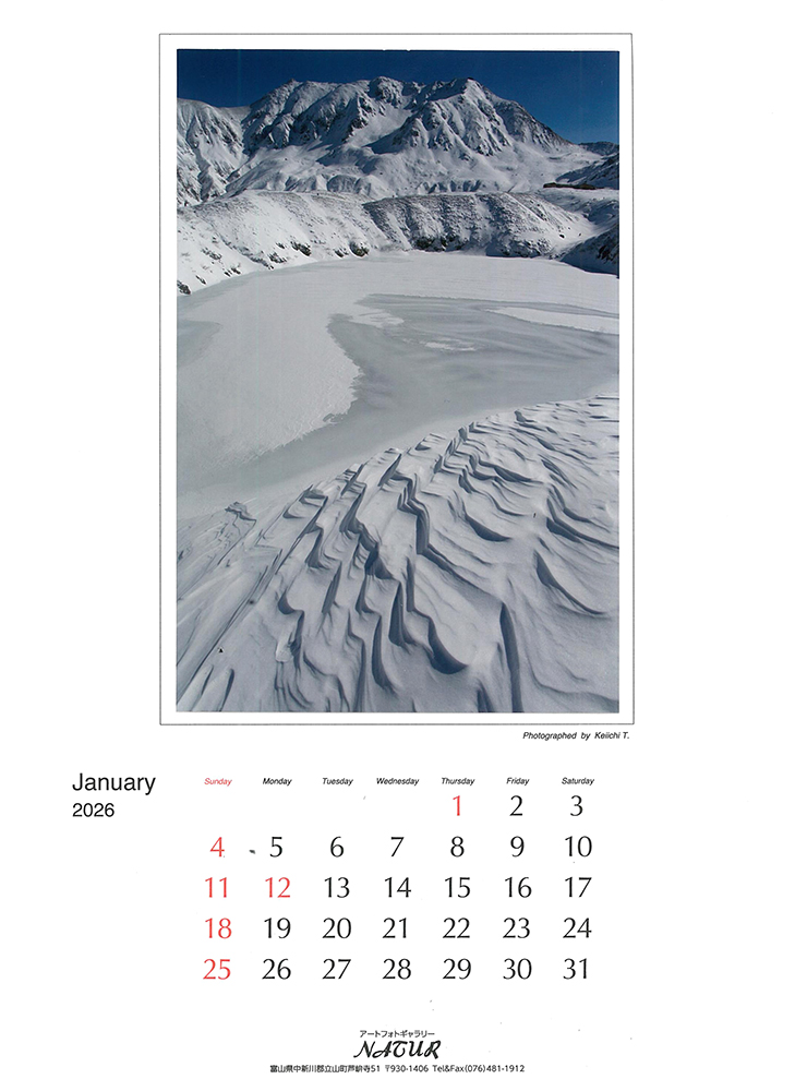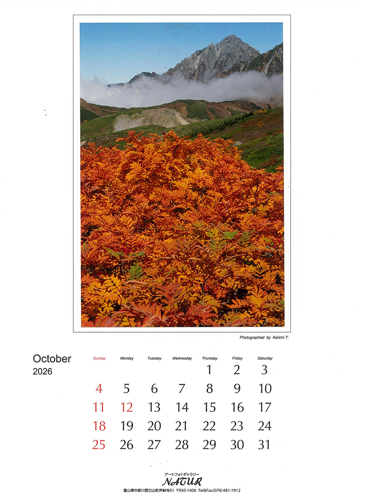 立山、大日、黒部峡谷。富山県を代表する山々の四季折々の写真を集めた手作りカレンダーです。